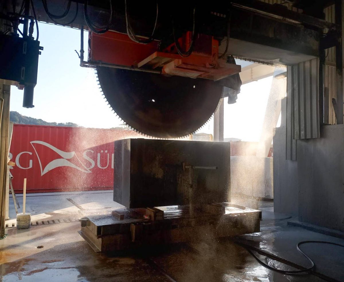 Factory is also equipped with circular cutters with diameter of 3.5 meter for cutting thick slabs and squaring blocks.